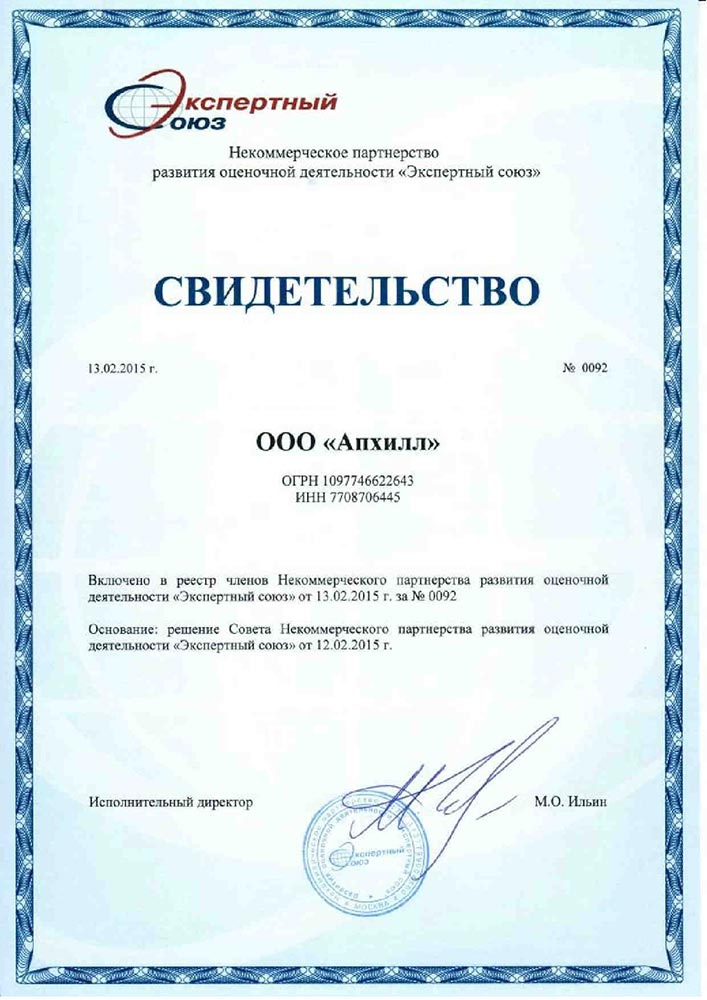 - Оценщики компании состоят в НП СРОО «Экспертный совет», СРО «Российское общество оценщиков», НП СРОО «Сообщество профессионалов оценки» и в СРО Союз «Федерация Специалистов Оценщиков».
