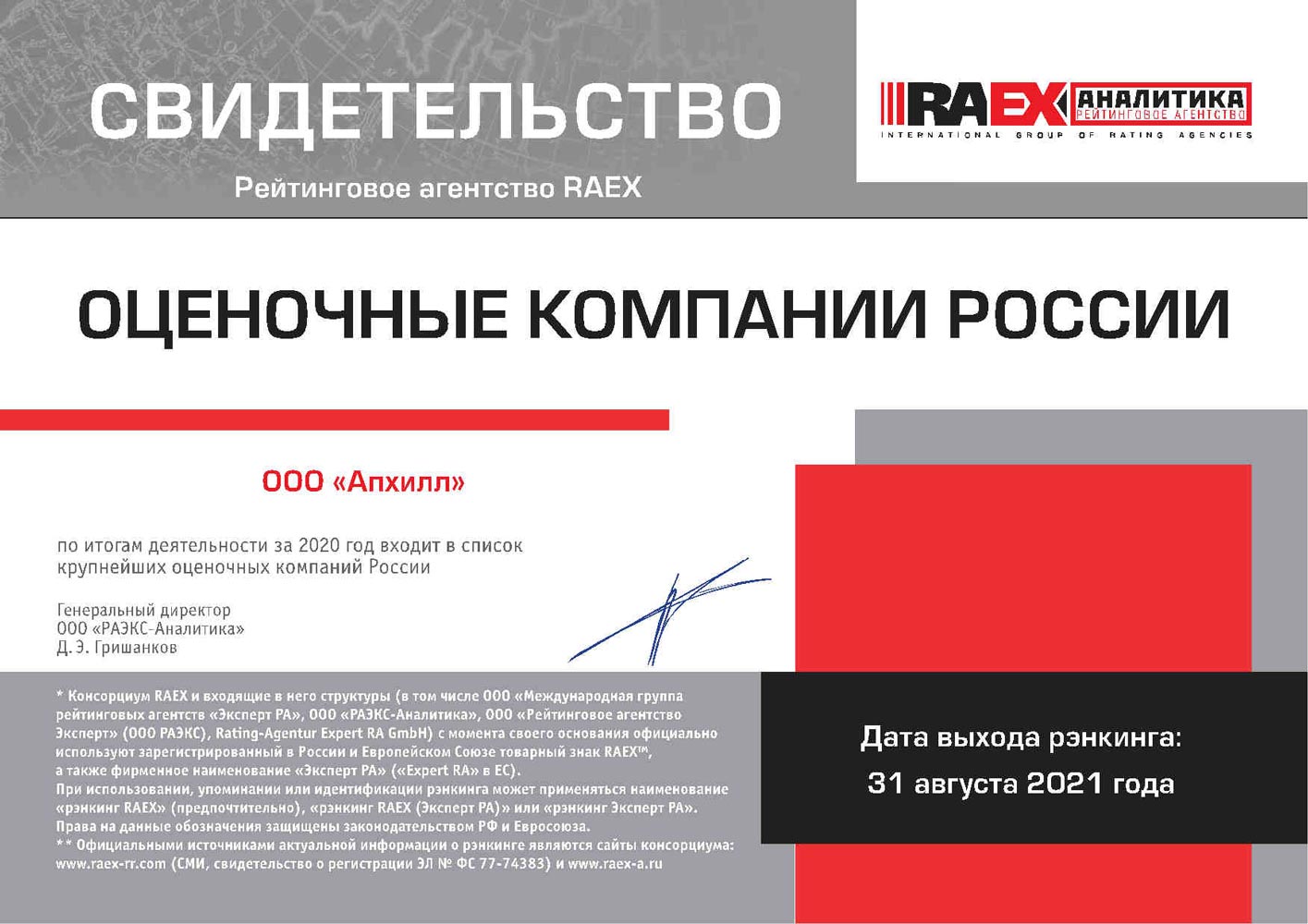 "Апхилл" входит в рейтинг крупнейших оценочных компаний по итогам 2020